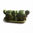 Bear Head Salt & Pepper Shakers Tray Green Arrow Jersey City Nj Vintage Japan