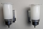 Restored Pair Halcolite Chromed Bath Sconces, Opal Glass Shades, 1930s, Art Deco