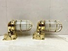 Vtg Nautical Sconce Pair Antique Wall Light Fixture Mep Art Glass Usa #g96