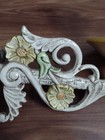 Tole Electric Wall Sconce Green With Pink Flowers Green Leaves Crystals
