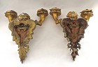 Pair 19c Carved Gilt Wood French Louis Xv Putti Double Wall Sconces Electrified