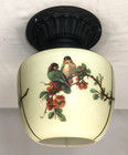 Parrot Glass Shade Vtg Ceiling Light Antique Cast Iron Fixture Flush Art Usa #l7