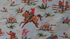 Vintage Cotton Barkcloth Pattern Bucking Broncos & Cowboys On Baby Blue Fabric