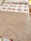 Antique Primitive American Gold Cotton Wool Overshot Jacquard Coverlet Blanket