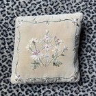 Embroidered Floral Throw Pillow 11x11 Cottagecore Pastel Green Velvet Accent Vtg