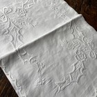 Vintage Dresser Scarf, Flower Embroidery, Linen, White, Pastels