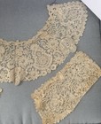 Antique Lace Pair Victorian Lace Cuffs Handmade Mother Of Pearl Buttons Collar