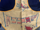 Vintage Apron Folk Art Design Red Yellow Blue Handmade Tie Back Attached Towel