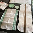 Antq Vtg Lot 7 50s Green Embroidered Crochet Doilies Table Cloth Art Deco Linens
