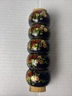 Russian Folk Art Hand Painted Napkin Rings Navy Blue Lacquer Beautiful Set Of 5