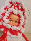 Vintage Handmade Crochet Doll Face Pot Holders Red White Kitsch Retro Kitchen