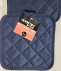 Vintage Lot 2 X Cat Potholders Navy Blue Floral Embroidered Retro Linen Kitten