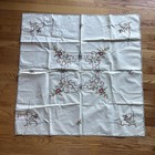 Embroidered Floral Cross Stitch Linen Tablecloth Crochet Hem Edging 32”x32"