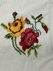 Cutter Tablecloth Vtg Cross Stitch Coveryellow Red Roses Knit Fabric 50x92 Craft