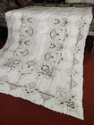 Antique Linen Lace Tablecloth Embroidered Bedspread Needlework Embroidery Woven