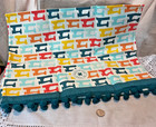 Vintage Hand Embroidered Cotton 'kittens W/chores' Tea Towels W/stripes