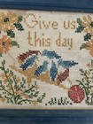 Antique Needlework Sampler Cross Stitch Framed Blue Bird Give Us This Day
