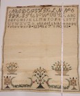 Large Unfinished Antique Sampler Dated 1851 – Cartouche, Baskets, Alphabets