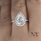 3 Carat Excellent Pear Cut Moissanite Halo Engagement Ring Solid 14k White Gold