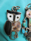 Vtg Lot Sterling Silver Turquoise Zuni Mop Onyx Inlaid Pendant Earring Bird Owl