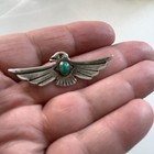 Unsigned Ellen Quandelacy Hummingbird Brooch Zuni Turquoise Sterling Silver Vtg