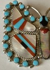Huge Native American Turquoise & Coral Cluster Half Dollars Sterling Silver Pin