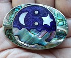 Alpaca Silver Mexico Abalone Celestial Moon Star Pin Brooch Pendant Jewelry Vtg
