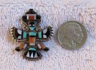 Zuni Indian Sterling Silver Inlaid Turquoise Coral Jet Mop Kachina Figure Pin