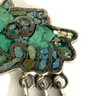Vintage Mexican Sterling Silver Aztec Mayan Brooch W/ Inlayed Turquoise.