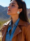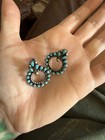 Vintage Native American Sterling Silver Turquoise Stud Hoop Earrings