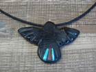 Hand Carved Jet & Turquoise Magpie Fetish Necklace By Matt Mitchell