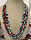23" Multi-strands Turquoise/coral Nugget Necklace//gorgeous!!(y402c-w3)