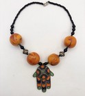 Vintage Moroccan Berber Necklace Hand Of Fatima Tribal Orange Beads Pendant