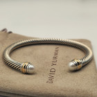 David Yurman Sterling Silver & 14k Gold Pearl 5mm Cable Cuff Bracelet