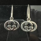 Gucci Gg Interlocking Hook Dangle Earrings Sterling Silver 925 Japan Near Mint