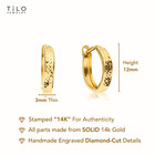 14k Real Solid Gold Round Diamond-cut Huggie Hoop Earrings Small Size 12mm