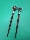 Nice Made In Ukraine Enamel Silver 925 With Wood Set Of 2 Hair Pins 6in