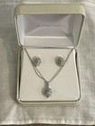 ✨10k White Gold Aquamarine & Diamond Accent. Earrings + Pendant Chain Set ✨nib
