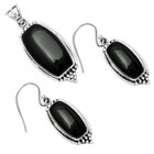 Black Onyx - Brazil 925 Sterling Silver Pendant Earrings Jewelry Set T-1007