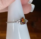 Fine Rare Beautiful 925ss Black Rainbow Fire Opal Cz Teardrop Ring Size 8.75