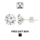14k White Gold Round Bright Clear Cz Martini Prong Set Stud Earrings1.5-10mm