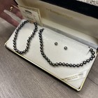 Bbj Sterling Silver 925 Black Spinel Pendant Necklace With Stud Earrings Set