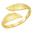 14k Yellow Gold Bohemian Two Feathers Bypass Adjustable Toe Ring