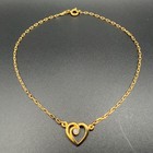 Vtg 10k 417 White Gold Floating Heart Charm 10-1/4" Rolo Chain Bracelet / Anklet