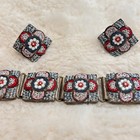 Vintage Giuliano Fratti Milan Signed Set Bracelet Earrings Micro Mosaic Red Pink