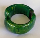 Rare Vintage Swirl Green Yellow Bakelite Clamper Bracelet