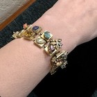 Vtg Estate Double Row Slide Charm Bracelet Victorian Revival Gold Tone Read