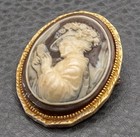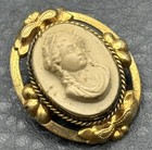 Vintage Cameo Brooch Victorian Style Gold Tone Classical Woman Lady Profile