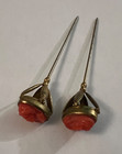 Pair Antique Elegant Victorian Carved Coral Cameo Hatpins Lady Bust Sculpture
