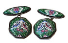 Antique Vintage Persian Enamel Cufflinks With Birds ~ Green, Purple, Blue